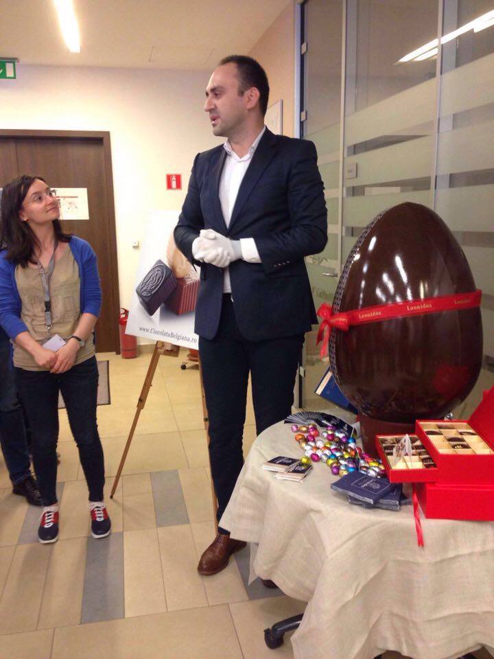 3. Oul de ciocolată de 8 kg este cel mai mare ou de ciocolată din România, produsul vedetă al Leonidas, în această primăvară. Trebuia să îl “inaugurăm” cu oameni pe măsură!