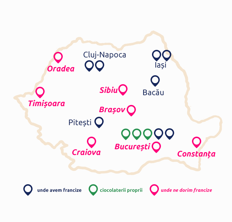 Vrem să deschidem ciocolaterii în Timișoara, Oradea, Brașov, Sibiu, Craiova, Constanța și alte orașe mari și medii